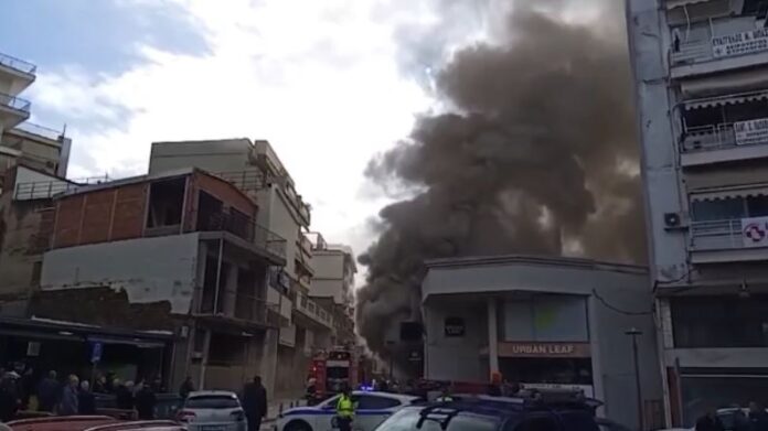 Σύμφωνα με πληροφορίες, η φωτιά επεκτάθηκε και σε κατάστημα υποδημάτων που βρίσκεται στην οδό Κύπρου.