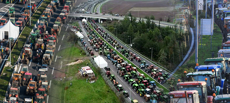 Τα μπλόκα της Νίκαιας και της Καρδίτσας, τα μεγαλύτερα που έχουν στηθεί στη χώρα με περισσότερα από 3.500 τρακτέρ, τα οποία συνεχώς ενισχύονται.