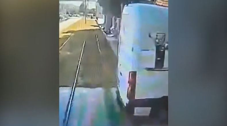 Βίντεο ντοκουμέντο καταγράφει τη στιγμή όπου ένα λευκό βαν τροφοδοσίας, κατά την προσπάθειά του να βγει με όπισθεν από παραλιακή επιχείρηση, συγκρούστηκε με τραμ.