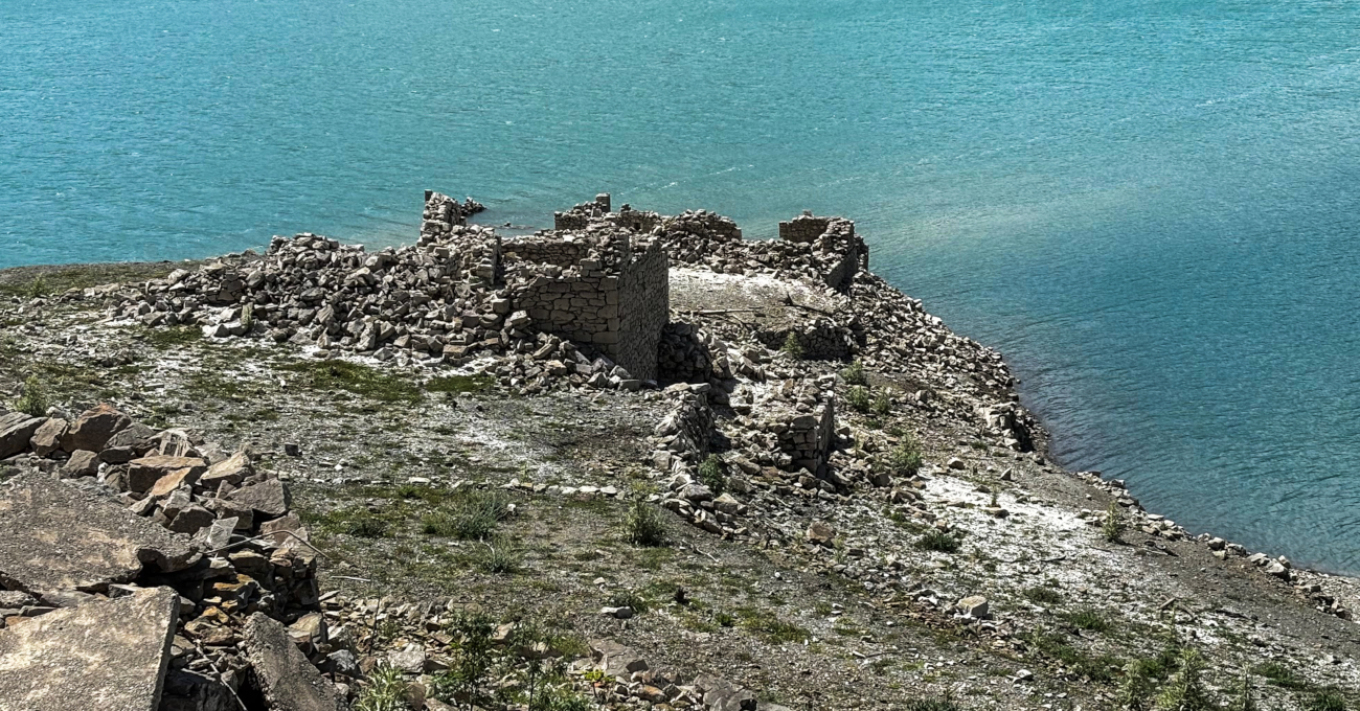 Το βυθισμένο χωριό Κάλλιο στη Δωρίδα αναδύεται ολοένα και περισσότερο, καθώς τα νερά της λίμνης του Μόρνου υποχωρούν ανησυχητικά.