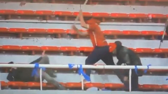 Στο πάνω διάζωμα του γηπέδου, Χιλιανοί οπαδοί έκλεψαν σημαία της αντίπαλης ομάδας, έσπασαν καθίσματα και εκτόξευσαν πέτρες και ξύλα προς την εξέδρα των γηπεδούχων.