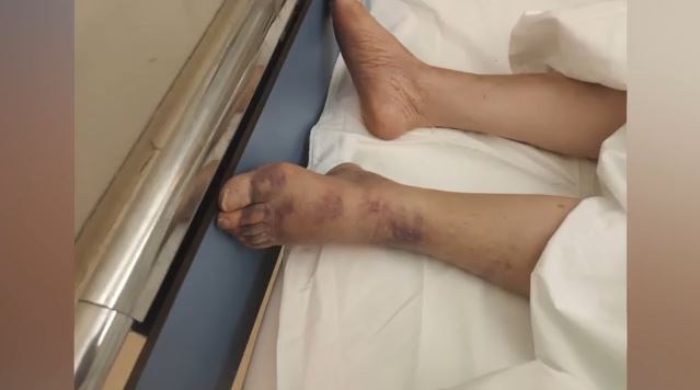 Όπως καταγγέλλει στις «Εξελίξεις Τώρα» ο εγγονός της 89χρονης, οι υπεύθυνοι του κέντρου, του είπαν ότι έπεσε και χτύπησε, όμως οι γιατροί που την είδαν τον διαβεβαίωσαν πως η ηλικιωμένη ήταν βάναυσα κακοποιημένη.
