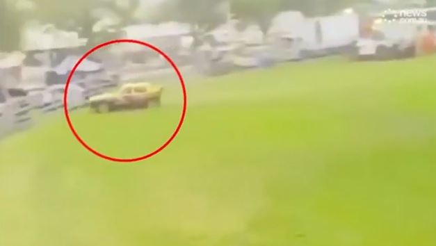 Σε βίντεο καταγράφεται η στιγμή που το αυτοκίνητο παρασύρει τους θεατές σε αγώνα επίδειξης στην πόλη Γουάλτσα της νοτιοανατολικής Αυστραλίας.