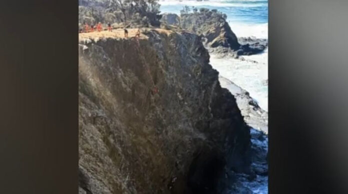 Τότε οι διασώστες έστησαν στην κορυφή του γκρεμού ένα ειδικό πλαίσιο και κατέβηκαν με σχοινιά 40 μέτρα κάτω. Πέρασαν τρεις ώρες μέχρι να ανεβάσουν στην κορυφή ένα- ένα τα μέλη της οικογένειας.