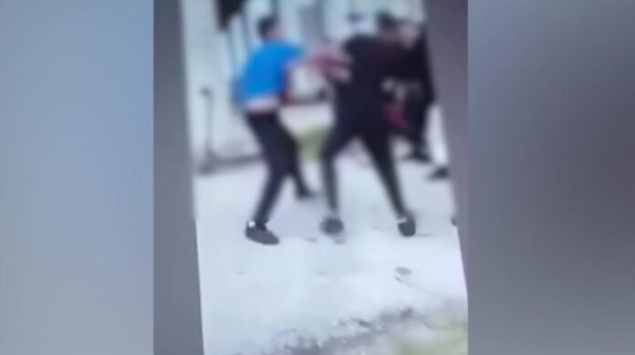 Στο βίντεο ντοκουμέντο, φαίνεται το αγόρι, που φορά τη μπλε μπλούζα, να έχει πιαστεί στα χέρια με ένα συνομήλικό του κι έπειτα να πέφτει κάτω και να δέχεται καθηλωμένος κλωτσιές και από δεύτερο ανήλικο, ενώ οι υπόλοιποι βιντεοσκοπούν αμέτοχοι το περιστατικό.