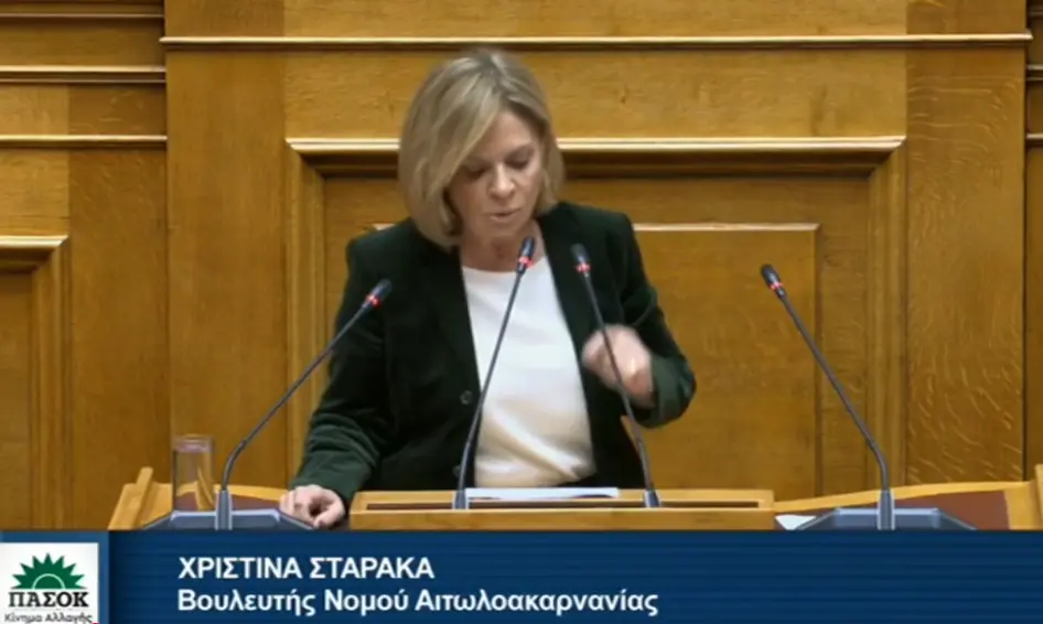 Στην Ολομέλεια της Βουλής, κατά τη συζήτηση του νέου φορολογικού νομοσχεδίου, η Βουλευτής Αιτωλοακαρνανίας του ΠΑΣΟΚ – Κινήματος Αλλαγής, Χριστίνα Σταρακά, άσκησε σκληρή κριτική στην κυβέρνηση, κάνοντας λόγο για ανισορροπία, κοινωνική αδικία, εγκατάλειψη της περιφέρειας και πολιτικές που θέτουν υπό εξαφάνιση τη μεσαία τάξη.