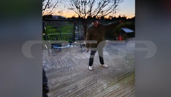 Ο Χρήστος Μαυρίκης κρατάει το όπλο στο χέρι του, δευτερόλεπτα πριν πυροβολήσει στον αέρα και σπείρει τον πανικό, έξω από το συγκρότημα κατοικιών όπου διαμένει, στα Σπάτα.