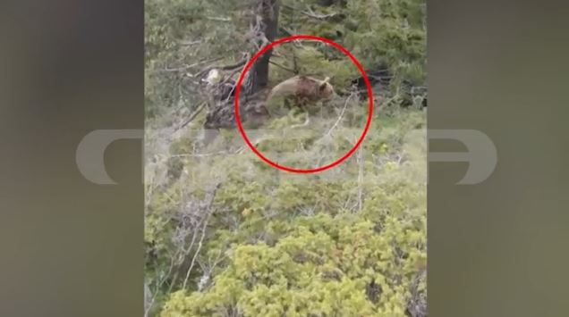Η αρκούδα, όπως αποτυπώνεται στο ντοκουμέντο του MEGA, εμφανίστηκε ξαφνικά μπροστά στους δύο έμπειρους ορειβάτες και το μικρό σκυλάκι που τους συντρόφευε.