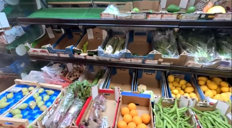 Άδεια ράφια σε οπωρολαχανικά και κρέατα.