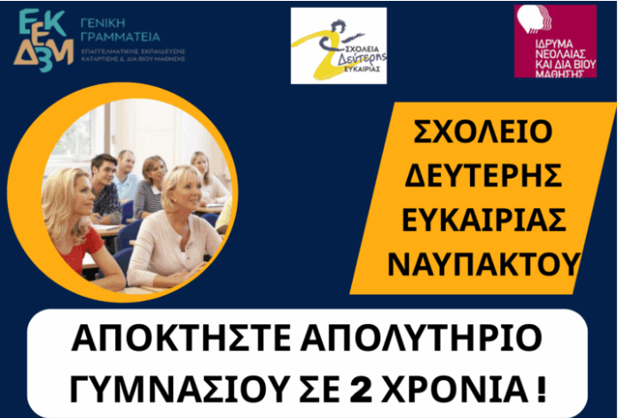 Όσες και όσοι ενδιαφέρονται να εγγραφούν στο Σχολείο Δεύτερης Ευκαιρίας Ναυπάκτου μπορούν να προσέρχονται στο σχολείο μέχρι τις 15 Σεπτεμβρίου 2025, τις εργάσιμες ημέρες και απογευματινές ώρες, από τις 5μ.μ. έως και τις 8.00μ.μ.