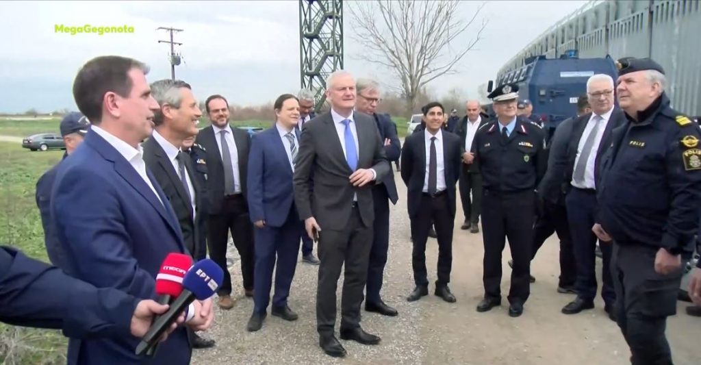 Συνοριοφύλακες από την Ελλάδα και από όλη την Ευρώπη δίπλα σε προηγμένα συστήματα ασφαλείας είναι οι πρώτες εικόνες που αντίκρυσαν μόλις έφθασαν στο φράχτη του Έβρου ο υπουργός Μετανάστευσης και Ασύλου, Δημήτρης Καιρίδης, με τον Γερμανό ομόλογό του Μπερντ Κροσερ ενώ λίγο νωρίτερα είχαν επισκεφθεί και το φυλάκιο του Έβρου.