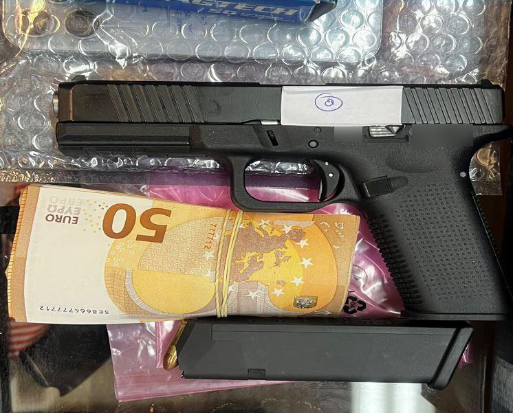 - -4- πιστόλια, -463- φυσίγγια, δίκανη καραμπίνα, σιγαστήρας πιστολιού, κάνη όπλου, -6- γεμιστήρες,