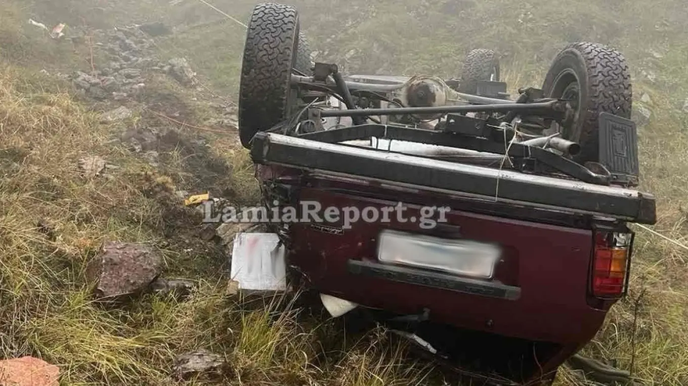Αυτοκίνητο τύπου τζιπ με δύο επιβάτες που πήγαιναν για κυνήγι, εξετράπη της πορείας του και έφυγε σε γκρεμό με αποτέλεσμα να εγκλωβιστούν στα συντρίμμια.