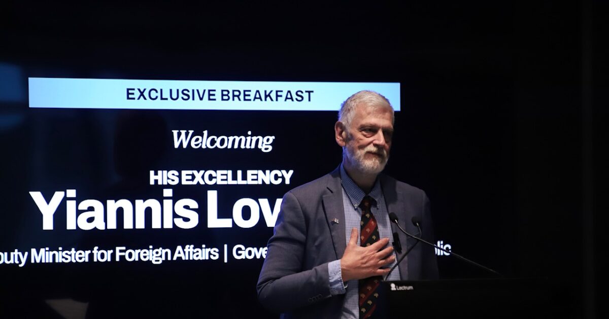 Μια εξαιρετικά σημαντική εκδήλωση πραγματοποιήθηκε, χθες (09/10/25), στο Business Sydney, με κεντρικό ομιλητή τον Υφυπουργό Εξωτερικών κ. Γιάννη Λοβέρδο, ο οποίος απηύθυνε λόγο σε περισσότερους από 100 Ελληνο-αυστραλούς επιχειρηματίες και εκπροσώπους του οικονομικού και κοινωνικού βίου της Νέας Νότιας Ουαλίας.