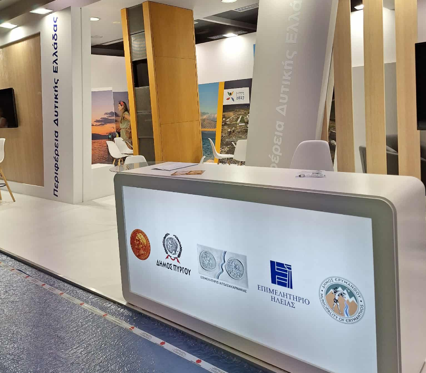 Το περίπτερο της ΠΔΕ φιλοξενεί φέτος οκτώ Δήμους της Δυτικής Ελλάδας – Πατρέων (ΚΕΔΗΠ Καρναβάλι Πάτρας), Αγρινίου, Αμφιλοχίας, Δυτικής Αχαΐας, Ερυμάνθου, Ήλιδας, Ι.Π. Μεσολογγίου και Πύργου – καθώς και τα Επιμελητήρια, Αιτωλοακαρνανίας και Ηλείας.