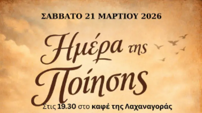 Το Σάββατο 21 Μαρτίου, στις 19.30, στο καφέ της Λαχαναγοράς ,σας περιμένουμε να γιορτάσουμε μαζί την ημέρα της ποίησης!
