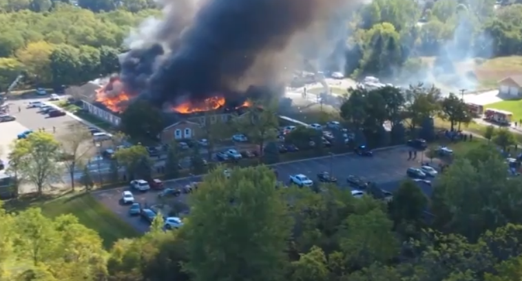 Φωτιά κατακαίει την εκκλησία μετά από περιστατικό με πυροβολισμούς.