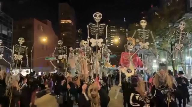 Χιλιάδες κόσμου ξεχύθηκαν στο κέντρο της Νέας Υόρκης για την 52η παρέλαση του Halloween. Φορώντας τα κοστούμια τους χορεύουν και τραγουδούν, με θέμα της φετινής παρέλασης «το ρεφενέ τραπέζι».