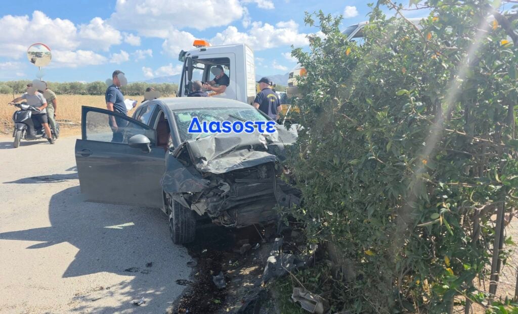 Η σύγκρουση ήταν τόσο σφοδρή που το αυτοκίνητο σταμάτησε πάνω σε τσιμεντένια κολώνα κεντρικής εισόδου κατοικίας, ενώ το αγροτικό όχημα κατέληξε μέσα σε αυλή, αφού πρώτα γκρέμισε τη σιδερένια αυλόπορτα…