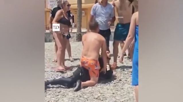 Οι παρευρισκόμενοι, μόλις οι μετανάστες, 13 στο σύνολο, πήδηξαν στη θάλασσα και βγήκαν στην ακτή, τους κυνήγησαν σταματώντας πολλούς από αυτούς, μέχρι να φτάσει η Αστυνομία προκειμένου να τους συλλάβει.
