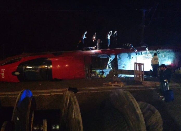 Το τρένο που εκτροχιάστηκε φέρεται να έτρεχε με 200 χιλιόμετρα την ώρα τη στιγμή του δυστυχήματος. Οι περισσότεροι νεκροί και τραυματίες εντοπίζονται στα δύο πρώτα βαγόνια του δεύτερου τρένου, ενώ μεταξύ των θυμάτων βρίσκεται και ο μηχανοδηγός της δεύτερης αμαξοστοιχίας.