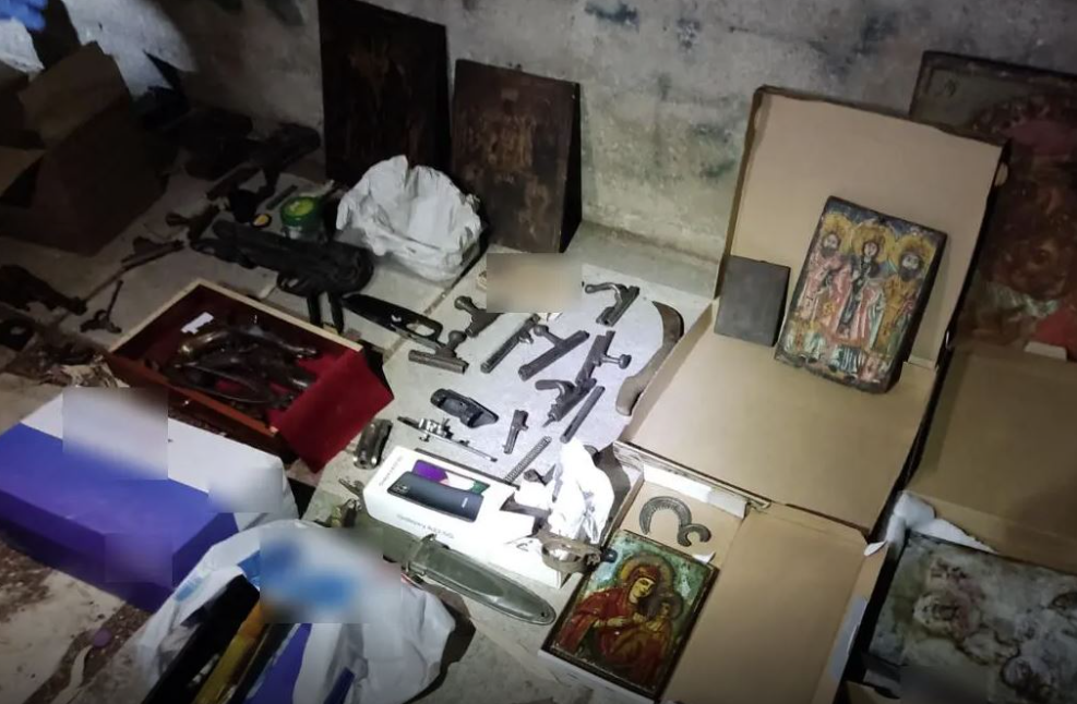 Αίσθηση προκαλεί το γεγονός ότι μαζί με όλα τα παραπάνω, βρέθηκαν και 14 θρησκευτικές εικόνες.