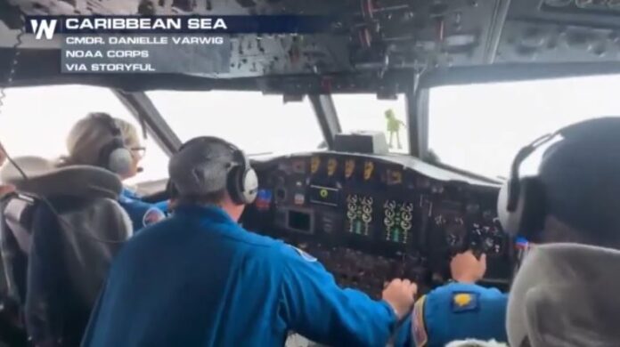Οι εικόνες κόβουν την ανάσα. Οι κυνηγοί καταιγίδων με το αεροπλάνο τους «Κέρμιτ» είναι στο μάτι του τυφώνα Melissa.