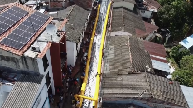 Όταν το θερμόμετρο χτυπάει «κόκκινο» οι Κολομβιανοί έχουν τη λύση. Στιγμές ανεμελιάς και δροσιάς χαρίζει σε μικρούς και μεγάλους μια νεροτσουλήθρα που έστησαν σε κεντρικό δρόμο στη βόρεια Κολομβία.