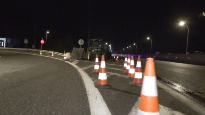 Η Τροχαία και η Νέα Οδός έχει πάρουν μέτρα, τοποθετώντας κώνους σε μήκος 1,5 χιλιομέτρων στον δρόμο. Οι 3 λωρίδες κυκλοφορίας έχουν γίνει μία.