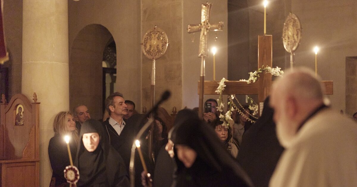Ο Κυριάκος Μητσοτάκη και η Μαρέβα Γκραμπόφσκι παρακολούθησαν την Ακολουθία του Επιτάφιου θρήνου στον ναό της Μονής που είναι αφιερωμένος στη Μεταμόρφωση του Σωτήρος , αλλά εορτάζει και στην εορτή της Αγίας Κυριακής και βρίσκεται περίπου 12 χιλιόμετρα από τα Χανιά.