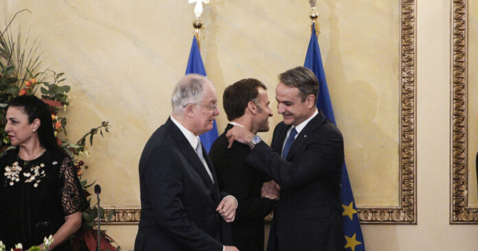 Στιγμιότυπο από το επίσημο δείπνο στο προεδρικό μέγαρο προς τιμήν του Γάλλου Προέδρου, Εμανουέλ Μακρόν / EUROKINISSI
