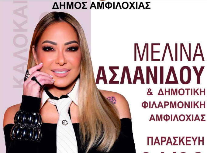 Ο Δήμος Αμφιλοχίας στο πλαίσιο των καλοκαιρινών εκδηλώσεων «Πανακαρνάνεια 2025» διοργανώνει με τη Δημοτική Φιλαρμονική Αμφιλοχίας την Παρασκευή 1 Αυγούστου 2025 στο λιμάνι της Αμφιλοχίας μεγάλη συναυλία με τη Μελίνα Ασλανίδου, μια από τις κορυφαίες γυναικείες φωνές της ελληνικής μουσικής σκηνής.