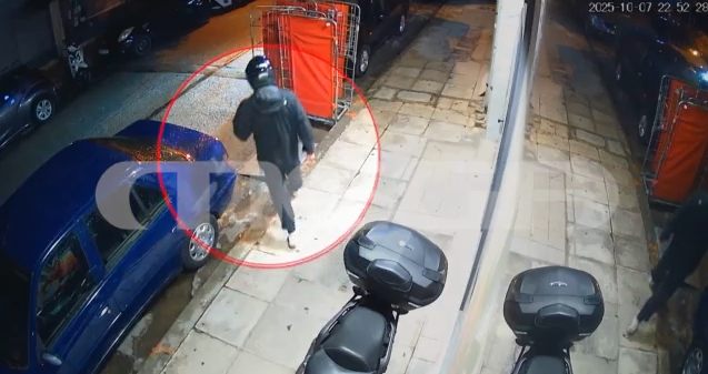 11 παρά δέκα το βράδυ φτάνει έξω από ένα σούπερ μάρκετ. Όπως φαίνεται στα αποκλειστικά πλάνα, έχει φορέσει ήδη το κράνος στο κεφάλι, προφανώς για να καλύψει το πρόσωπο του. Κατευθύνεται προς το μέρος, όπου έχει «κρύψει» προσωρινά το σκούτερ της δολοφονίας.