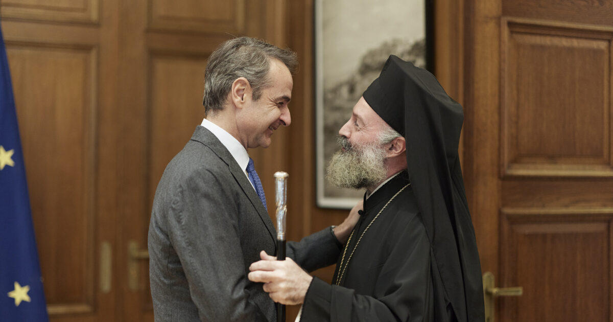 Ο πρωθυπουργός Κυριάκος Μητσοτάκης και ο Αρχιεπίσκοπος Αυστραλίας Μακάριος (Πηγή φωτογραφίας: ΓΤ Πρωθυπουργού)