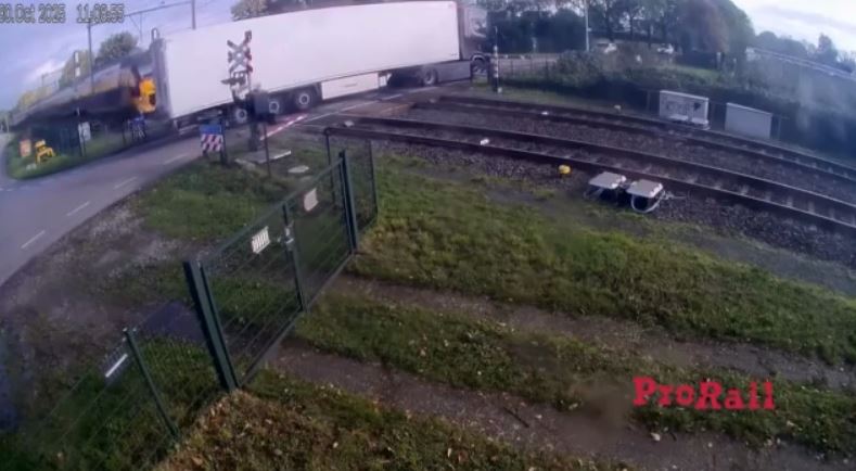 Τη σύγκρουση ενός επιβατικού τρένου με φορτηγό σε ισόπεδη διάβαση κατέγραψε κάμερα ασφαλείας κλειστού κυκλώματος στην Ολλανδία. Η συγκρουση ηταν ιδιαιτερα σφοδρή.