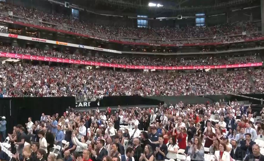 Ολόκληρο το στάδιο πλημμύρισε με σκίτσα του Τσάρλι Κερκ ενώ στο πλήθος απευθύνονται ακόμα ο αντιπρόεδρος και προσωπικός φίλος του Κερκ, Τζει Ντι Βανς, ο υπουργός πολέμου όπως λέγεται τώρα το υπουργείο Άμυνας, Πιτ Χέγκσεθ, ο υπουργός εξωτερικών Μάρκο Ρούμπιο και ο γιος του Ντόναλντ Τραμπ, Ντόναλντ Τραμπ Τζούνιορ.