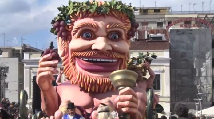 Ένας καρναβαλικός DJ είναι ο προπομπός και έπεται ο θεός Διόνυσος, ο βασιλιάς Καρνάβαλος.