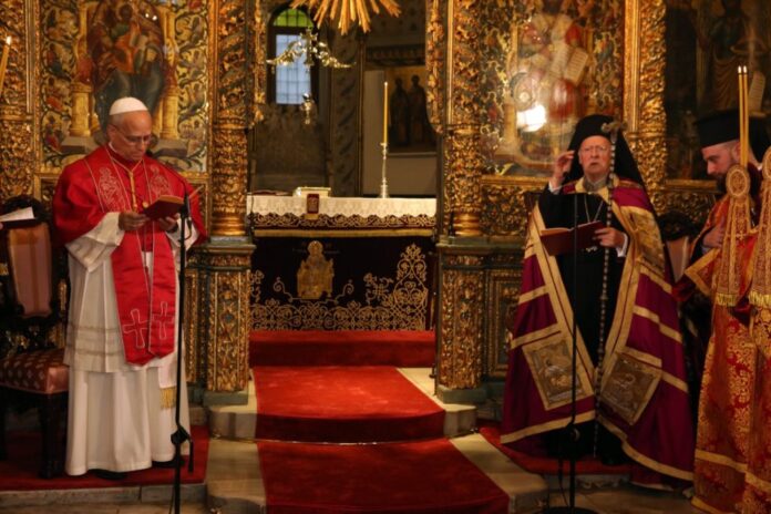 Νωρίτερα, ο Πάπας και ο Οικουμενικός πατριάρχης βαρθολομαίος υπέγραψαν στο Οικουμενικό Πατριαρχείο κοινή διακήρυξη.