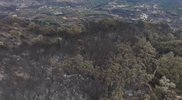 «Σύμφωνα με το βιντεοληπτικό υλικό του Αρχείου_1 και Αρχείου_3, (με την προϋπόθεση ότι οι εν λόγω λήψεις έλαβαν χώρα διαδοχικά και σε κοντινό διάστημα), μπορεί βάσιμα να υποστηριχθεί, ότι υφίσταται παράλληλη εξέλιξη της εκδηλωθείσας εντός του αγροτεμαχίου της οδού Αγίου Τρύφωνος εστίας και του προαναφερόμενου μετώπου, -ή μέρος αυτού-, που κατερχόταν με γενική κατεύθυνση εξάπλωσης προς αυτό», αναγράφεται στην νέα συμπληρωματική έκθεση της Πυροσβεστικής.