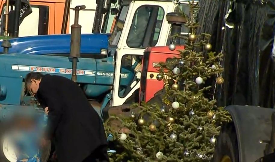 Στο μεγάλο μπλόκο της Νίκαιας, το χριστουγεννιάτικο δέντρο στήθηκε στον δρόμο δίπλα από τα τρακτέρ.