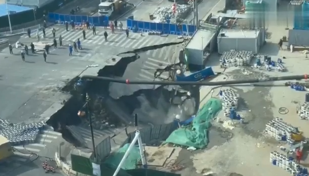 Στη Σαγκάη, μία τεράστια καταβόθρα «κατάπιε» ένα ολόκληρο εργοτάξιο.