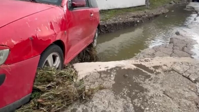 Στην είσοδο της Καλλιτεχνούπολης, ο δρόμος υποχώρησε και δημιούργησε μία χαράδρα 10 μέτρων.