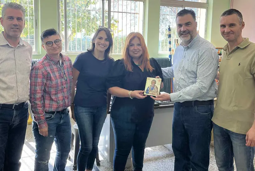 Να σημειωθεί πως ο κ. Σκιαδαρέσης παρέδωσε και στις δύο Διευθύντριες δώρο μία εικόνα του Αποστόλου Ανδρέου και μία ελληνική σημαία.