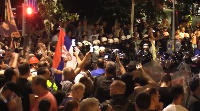 Δέκα πόλεις της Σερβίας στις φλόγες. Φιλοκυβερνητικοί και αντικυβερνητικοί διαδηλωτές συγκρούονται με λύσσα και η Αστυνομία προσπαθεί να τους χωρίσει. Οι δύο πλευρές χρησιμοποιούν ως όπλα ξύλα, βεγγαλικά και πυροτεχνήματα.