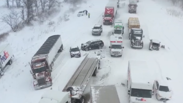 Μία απίστευτη καραμπόλα περίπου 100 οχημάτων παρέλυσε έναν βασικό αυτοκινητόδρομο του Μίσιγκαν στις ΗΠΑ. Λόγω σφοδρής χιονοθύελλας και σχεδόν μηδενικής ορατότητας, τα αυτοκίνητα άρχισαν να πέφτουν το ένα πάνω στο άλλο.