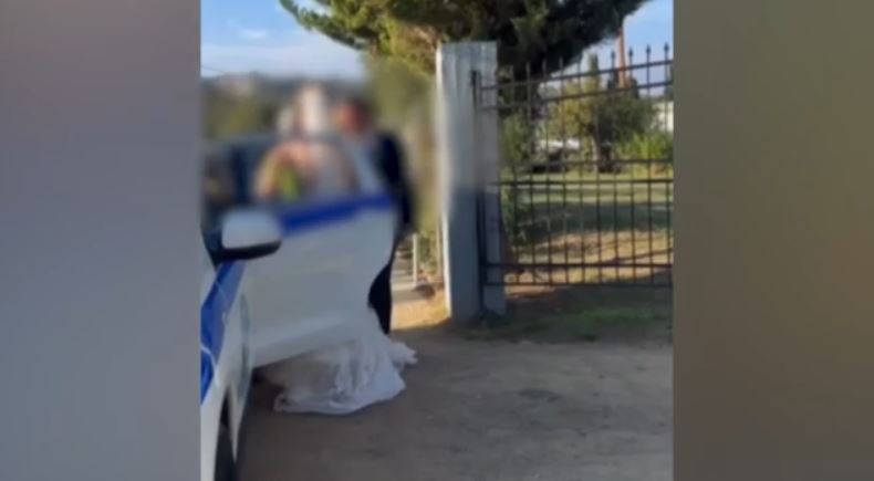 Τον γύρο του διαδικτύου κάνει το βίντεο που δείχνει μία νύφη στην Σκιάθο να φτάνει στην εκκλησία με περιπολικό.