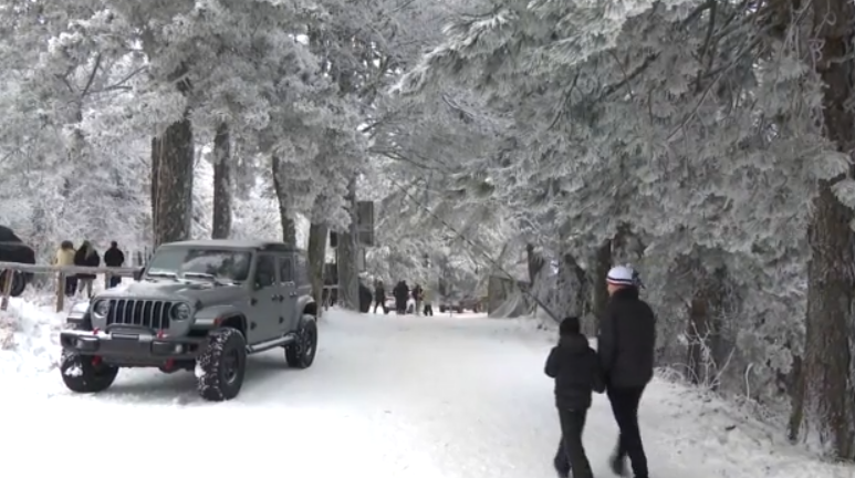 Στο Ελατοχώρι Πιερίας, το θερμόμετρο στους μείον τρεις βαθμούς, με τα εκχιονιστικά να δουλεύουν ασταμάτητα για να μείνουν οι δρόμοι ανοιχτοί.