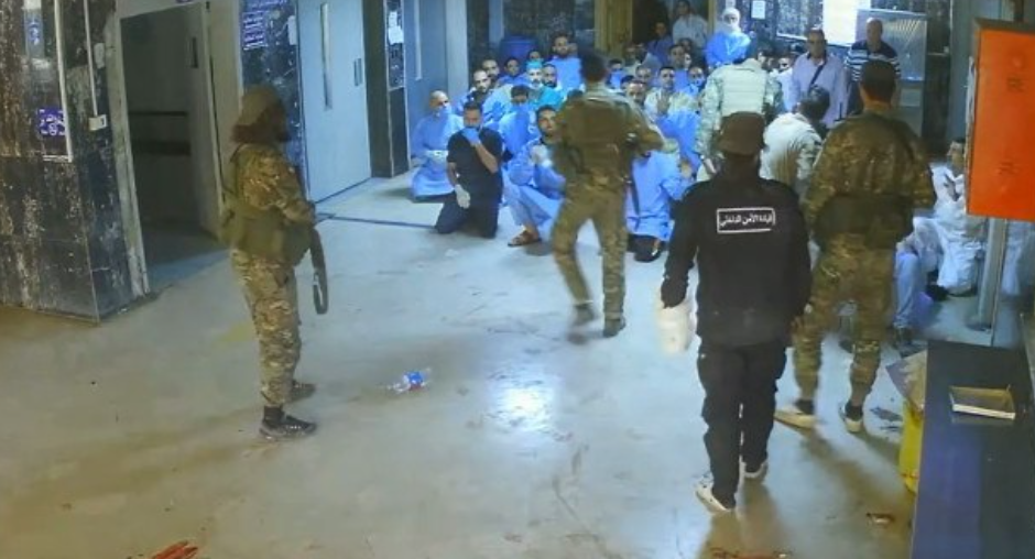 Στα πλάνα που κυκλοφόρησαν, φαίνονται ένοπλοι στρατιώτες να μπαίνουν σε νοσοκομείο και έβαλαν όλο το υγειονομικό προσωπικό να καθίσει στα γόνατα.