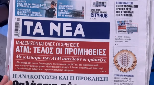 Αρχική ΚΟΙΝΩΝΙΑ Τα πρωτοσέλιδα των εφημερίδων σήμερα ΚΟΙΝΩΝΙΑ Τα πρωτοσέλιδα των εφημερίδων σήμερα Από admin - 22 Ιουλίου 2025 FacebookTwitterPinterestWhatsApp Τι γράφουν οι εφημερίδες σήμερα 22/07/2025. Πηγή ΠΑΡΟΜΟΙΑ ΑΡΘΡΑΠΕΡΙΣΣΟΤΕΡΑ ΑΠΟ ΤΟΝ ΔΗΜΙΟΥΡΓΟ Καιρός: «Σαρωτικό» το πέρασμα της κακοκαιρίας «Byron» από όλη την Ελλάδα Ζάκυνθος: Πίτμπουλ κατασπάραξε αγοράκι 2 ετών στην αυλή του σπιτιού του Ανυποχώρητοι οι αγρότες – Μπλόκα από χιλιάδες τρακτέρ σε όλη την Ελλάδα Καιρός: Μνήμες… «Daniel» στη Θεσσαλία από τον «Byron» – Σε επιφυλακή κάτοικοι & Αρχές Αλέξανδρος Γρηγορόπουλος: Εκδηλώσεις & πορείες μνήμης για τα 17 χρόνια από τη δολοφονία του Χανιά: Νεκρός σε τροχαίο ο αθλητής ΑμεΑ Κανάκης Κωνσταντάκης Ροή ειδήσεων Καιρός: «Σαρωτικό» το πέρασμα της κακοκαιρίας «Byron» από όλη την Ελλάδα 7 Δεκεμβρίου 2025 Ζάκυνθος: Πίτμπουλ κατασπάραξε αγοράκι 2 ετών στην αυλή του σπιτιού του 7 Δεκεμβρίου 2025 Ανυποχώρητοι οι αγρότες – Μπλόκα από χιλιάδες τρακτέρ σε όλη την... 7 Δεκεμβρίου 2025 Καιρός: Μνήμες… «Daniel» στη Θεσσαλία από τον «Byron» – Σε επιφυλακή... 7 Δεκεμβρίου 2025 Αλέξανδρος Γρηγορόπουλος: Εκδηλώσεις & πορείες μνήμης για τα 17 χρόνια από... 7 Δεκεμβρίου 2025 Χανιά: Νεκρός σε τροχαίο ο αθλητής ΑμεΑ Κανάκης Κωνσταντάκης 6 Δεκεμβρίου 2025 Στέφανος Τσιτσιπάς: Προθεσμία έως την Παρασκευή για την παράδοση του διπλώματος... 6 Δεκεμβρίου 2025 Κρήτη: Νεκροί 18 μετανάστες μετά από ναυάγιο 6 Δεκεμβρίου 2025 «Φως στο Τούνελ»: Στο «μικροσκόπιο» δύο υποθέσεις 6 Δεκεμβρίου 2025