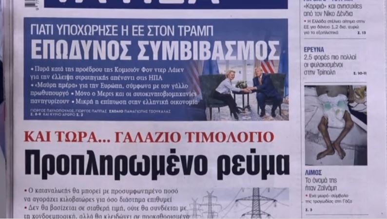 Αρχική ΚΟΙΝΩΝΙΑ Τα πρωτοσέλιδα των εφημερίδων σήμερα ΚΟΙΝΩΝΙΑ Τα πρωτοσέλιδα των εφημερίδων σήμερα Από admin - 29 Ιουλίου 2025 FacebookTwitterPinterestWhatsApp Τι γράφουν οι εφημερίδες σήμερα 29/07/2025. Πηγή ΠΑΡΟΜΟΙΑ ΑΡΘΡΑΠΕΡΙΣΣΟΤΕΡΑ ΑΠΟ ΤΟΝ ΔΗΜΙΟΥΡΓΟ Καιρός: Στο έλεος της κακοκαιρίας «Byron» ολόκληρη η χώρα – Πλημμύρες & προβλήματα Καιρός: «Πνίγηκε» η δυτική Αττική από την κακοκαιρία «Byron» – Χείμαρροι οι δρόμοι, πλημμύρισαν σπίτια Κακοκαιρία Byron: «Σιντριβάνια» και πλημμύρες στην Καλλιθέα – «Βενετία» το Μοναστηράκι Καιρός: Πλημμύρες & προβλήματα σε ολόκληρη τη χώρα από την κακοκαιρία «Byron» – Πότε εξασθενούν τα φαινόμενα Κλιμακώνονται οι αγροτικές κινητοποιήσεις – Ένταση, συγκρούσεις αγροτών & αστυνομικών και χημικά Λούτσα: Το τελευταίο «αντίο» στον 24χρονο που σκοτώθηκε σε τροχαίο Ροή ειδήσεων Καιρός: Στο έλεος της κακοκαιρίας «Byron» ολόκληρη η χώρα – Πλημμύρες... 5 Δεκεμβρίου 2025 Σακελλαρίδης για Τσίπρα: Η κατάληξη θα είναι το νησί της Καλυψώς... 5 Δεκεμβρίου 2025 Καιρός: «Πνίγηκε» η δυτική Αττική από την κακοκαιρία «Byron» – Χείμαρροι... 5 Δεκεμβρίου 2025 Κίμπερλι Γκιλφόιλ από Θεσσαλονίκη: Ζωτικής σημασίας για τις ελληνοαμερικανικές σχέσεις η... 5 Δεκεμβρίου 2025 Κακοκαιρία Byron: «Σιντριβάνια» και πλημμύρες στην Καλλιθέα – «Βενετία» το Μοναστηράκι 5 Δεκεμβρίου 2025 Μητσοτάκης, Κουτσούμπας, Ανδρουλάκης και Τσίπρας χορεύουν πεντοζάλι χάρη στην τεχνητή νοημοσύνη 5 Δεκεμβρίου 2025 Καιρός: Πλημμύρες & προβλήματα σε ολόκληρη τη χώρα από την κακοκαιρία... 5 Δεκεμβρίου 2025 Ενίσχυση των ανατολικών συνόρων του ΝΑΤΟ με το βλέμμα στραμμένο στη... 5 Δεκεμβρίου 2025 Κλιμακώνονται οι αγροτικές κινητοποιήσεις – Ένταση, συγκρούσεις αγροτών & αστυνομικών και... 5 Δεκεμβρίου 2025
